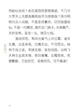 而胎仙岂结?志在温饱而梦想清虚,不几令 大罗天上无数高真闻言尽为绝倒哉?吾今明 明为众人说破,不是圣贤豪杰,切勿指望成 仙;不是一代儒宗,莫作玄门弟子。天律最严, 天听至卑。妄念一生,殃及七祖。 是经所在,有祥光紫气上冲云霄,诸天 生喜,众圣来观,功德无边,不可思议。倘 有不肖之徒,本昧玄修,妄加诋毁,当有飞 天神王击其本身,旁及眷属,生罹奇疾,死 堕酆都,万劫茫茫,虽悔何及,可不慎诸! 148